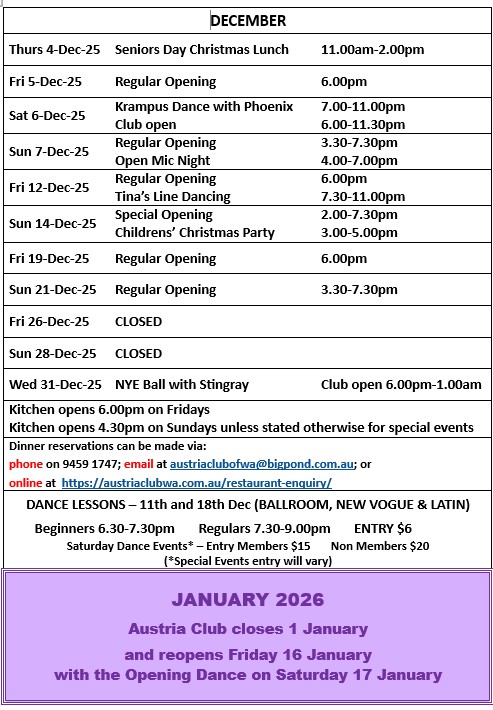 AUSTRIA CLUB EVENTS